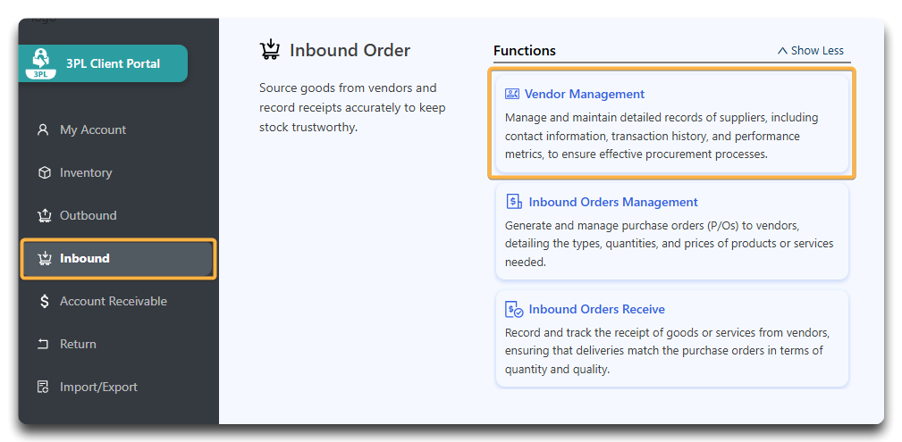 Everything you'll need to know about adding, editing, or deleting Vendors in the 3PL Client Portal.