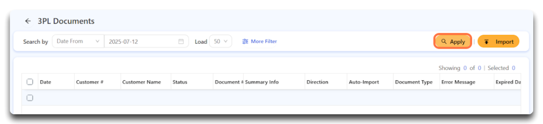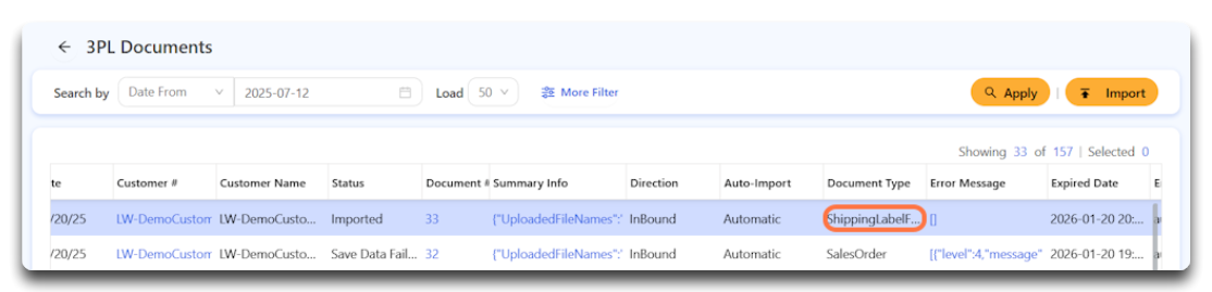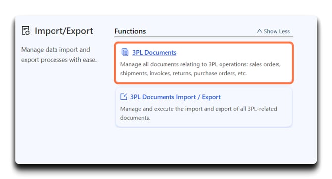 | 1 | Open Import/Export → 3PL Documents | Access import history |