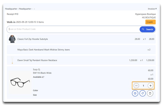 Use the plus/minus buttons to adjust quantities or click the number between them to enter a specific amount.