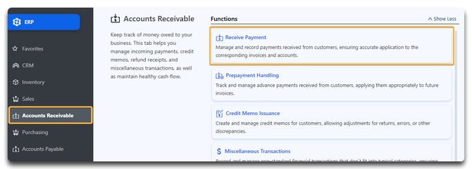 Accounts Receivable > Receive Payment.