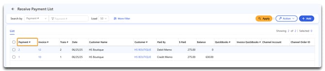 Then, search for your payment and click on a specific Payment #.