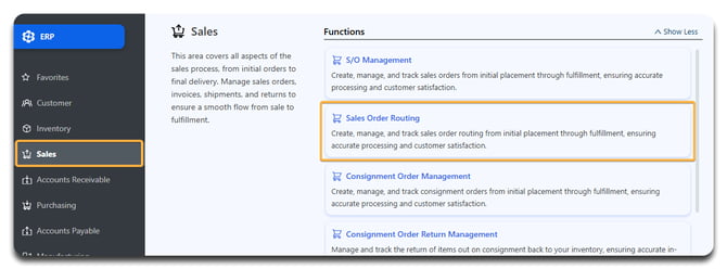 Go to Sales → Sales Order Routing.