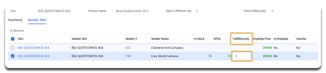 Enter the fulfilling quantity for the correct vendor, then click outside the field.