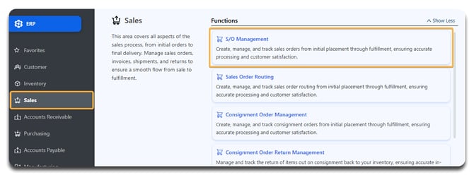Go to ERP → Sales → SO Management.